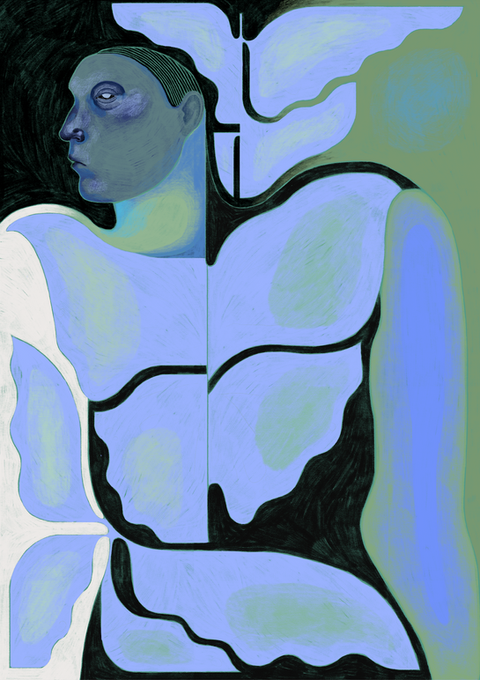 Carla Experiments with gender neutrality and plays with different shapes and layers while representing human emotion. Always using an eclectic color palette and mixing saturated opposites to create the feeling of warmness, or on the contrary, cold and loneliness.